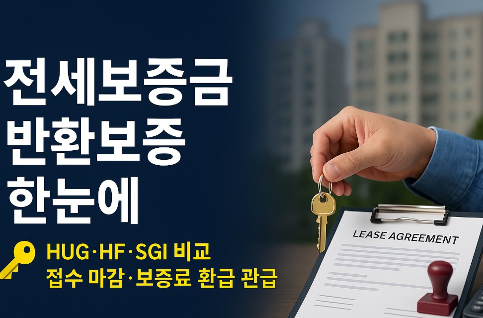 임대인이 보증금을 제때 못 돌려줄 때 보증기관이 먼저 지급하고 이후 임대인에게 구상하는 제도가 전세보증금 반환보증이에요. 국내에서 주로 쓰이는 곳은 HUG(주택도시보증공사), HF(한국주택금융공사), SGI서울보증. 일반적으로 HUG·HF는 임차인 신청형, SGI는 임대인 가입형(보험계약자=임대인, 피보험자=임차인) 구조가 대표적입니다.