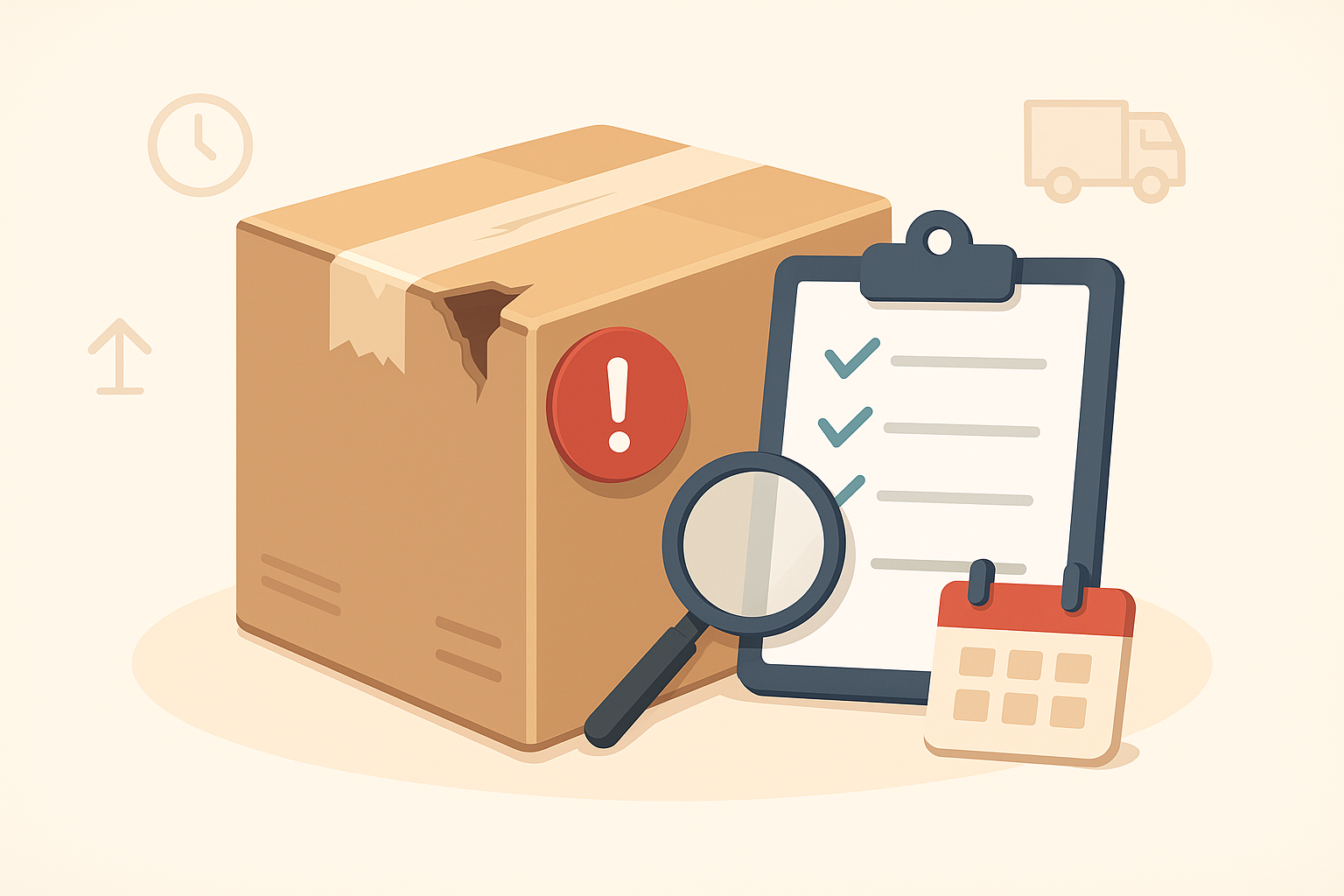 파손·분실 사고는 손해입증서류 제출일로부터 30일 내 우선 배상이 표준입니다. “조사 중”이라는 말로만 시간 끄는 경우, 접수일·서류 제출일·요청 답변일을 타임라인으로 정리해 “우선배상 규정”을 근거로 처리 일정을 재촉하세요. 약관상 운임 정보 고지(기본·할증) 의무도 있으니 함께 점검하면 좋습니다.